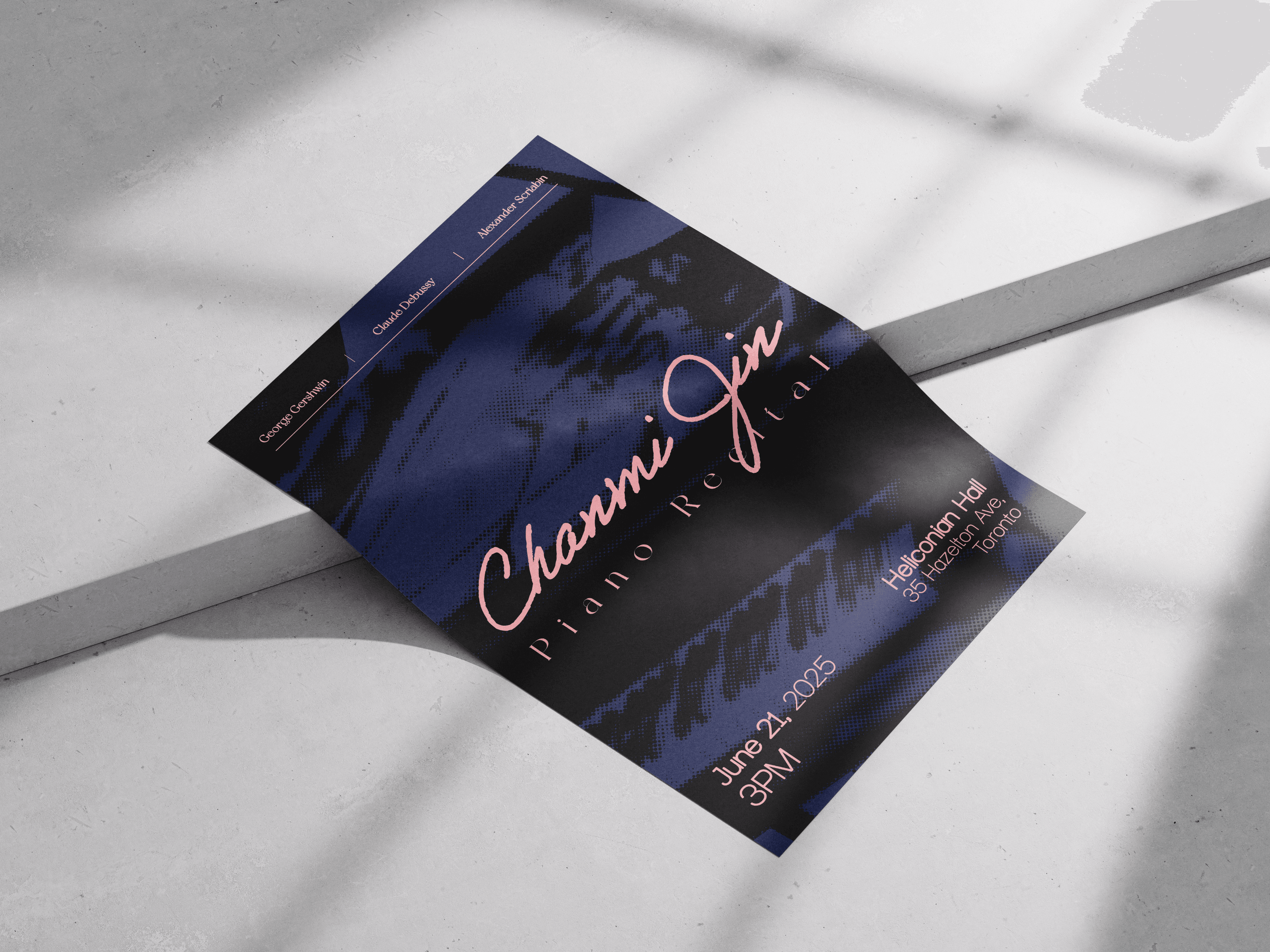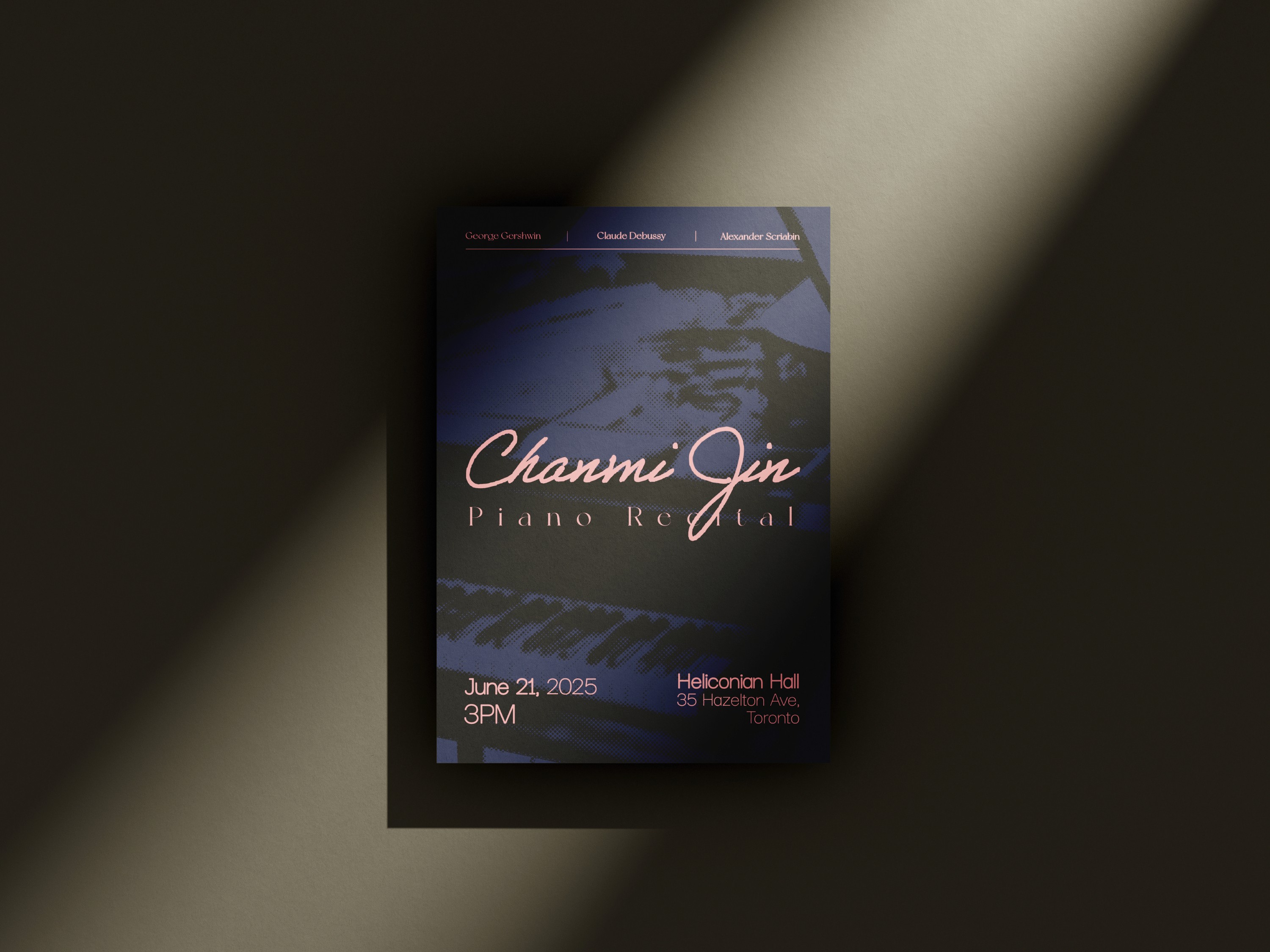 Designed a promotional poster for a piano recital by a local musician. The visual concept focuses on creating an elegant and atmospheric mood that reflects the tone of a classical piano performance while clearly highlighting the event details.